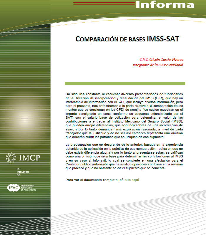 CROSS 2020-01 Comparación de Bases IMSS-SAT