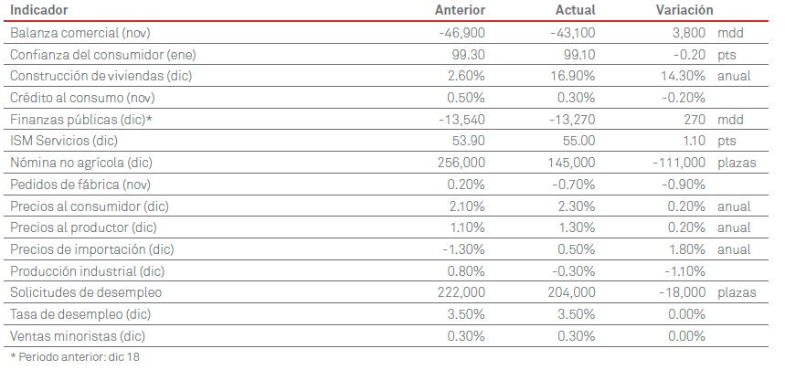 La economía de Estados Unidos mostró tasas de crecimiento modestas en las últimas semanas de 2019, con pocos cambios respecto al informe anterior, afectadas por la incertidumbre en materia comercial, dijo la Reserva Federal (Fed) en el reporte conocido como Beige Book. “En muchos distritos, los aranceles y la incertidumbre comercial continuaron afectando a algunas empresas”. “Las perspectivas a corto plazo siguieron siendo moderadamente favorables en todo el país”. Los encuestados por la Fed dijeron que el mercado laboral presenta un crecimiento estable en todo el país. La mayoría de los distritos mencionó la escasez generalizada de mano de obra como un factor que limita el crecimiento del empleo y, en algunos casos, la expansión de los negocios”. “El crecimiento salarial se caracterizó como modesto o moderado en la mayoría de los distritos”. “Los fabricantes también dijeron que los precios de los bienes y servicios en la mayoría de los distritos aumentaron de manera modesta respecto al informe anterior al igual que el costo de los insumos”.