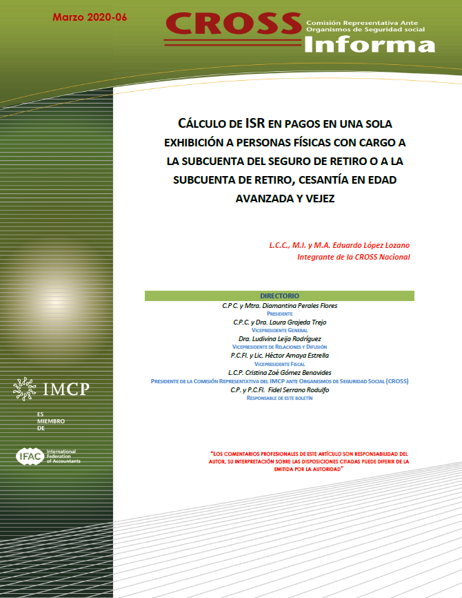 A partir de 2020 se incorpora en la Ley del Impuesto Sobre la Renta (LISR) una adición -el artículo 96-BIS- relativo a la entrega de pagos en una sola exhibición a personas físicas con cargo a la subcuenta del seguro de retiro o a la subcuenta de retiro, cesantía en edad avanzada y vejez.