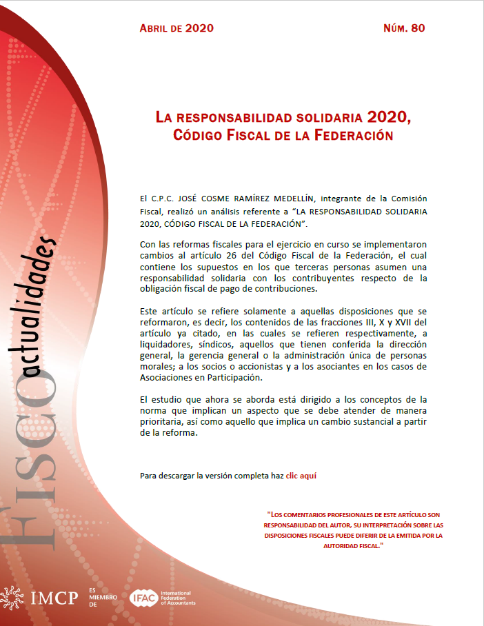 Fiscoactualidades 2020-80 LA RESPONSABILIDAD SOLIDARIA 2020, CÓDIGO FISCAL DE LA FEDERACIÓN