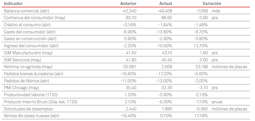 El Libro Beige de la Reserva Federal dijo que la información recolectada antes del 18 de mayo mostró bruscas caídas de la actividad en la mayoría de los distritos. Esto debido a las interrupciones asociadas con la pandemia del COVID-19. El gasto del consumidor se redujo aún más, con disminuciones especialmente severas en el sector del entretenimiento y la hospitalidad, con muy poca actividad en los negocios de viajes y turismo. Las ventas de automóviles fueron sustancialmente más bajas. Las ventas de casas residenciales se desplomaron. Los banqueros informaron una fuerte demanda de préstamos. Las condiciones agrícolas empeoraron. La actividad energética se desplomó por el cierre de pozos petroleros. Aunque muchos contactos expresaron la esperanza de que la actividad general se recupere a medida que se reabran las empresas, el panorama se mantuvo muy incierto y la mayoría de los contactos fueron pesimistas sobre el posible ritmo de recuperación. El empleo continuó disminuyendo en todos los distritos. La mayoría de los distritos notaron aumentos salariales en sectores esenciales y de alta demanda, mientras que los salarios fueron planos o disminuyeron en otros sectores. Las presiones de precios variaron, pero se mantuvieron firmes para bajar modestamente en equilibrio.