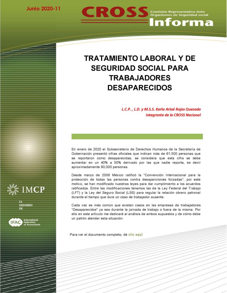 Desde marzo de 2008 México ratificó la “Convención Internacional para la protección de todas las personas contra desapariciones forzadas”, por este motivo, se han modificado nuestras leyes para dar cumplimiento a los acuerdos ratificados. Entre las modificaciones tenemos las de la Ley Federal del Trabajo (LFT) y la Ley del Seguro Social (LSS) para regular la relación obrero patronal durante el tiempo que dure un caso de trabajador ausente.