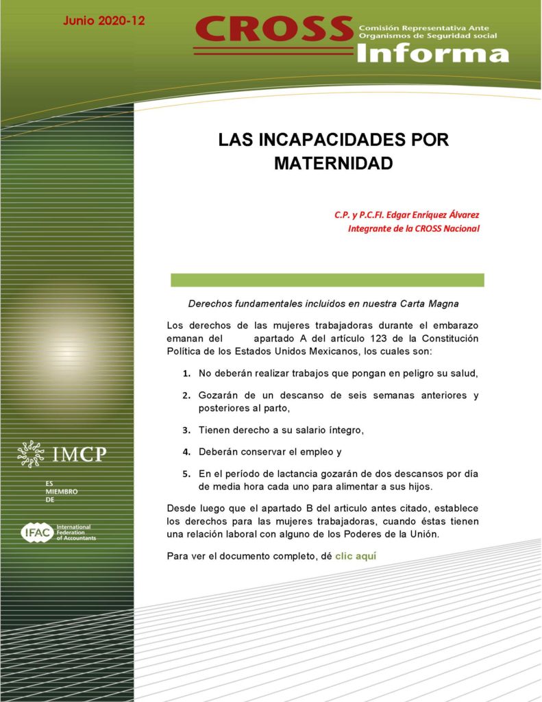 CROSS 2020-12 LAS INCAPACIDADES POR MATERNIDAD