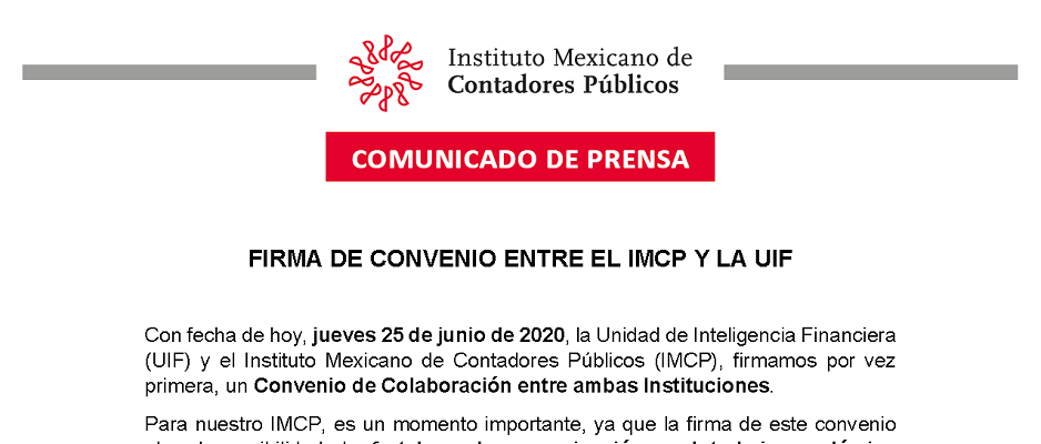 FIRMA DE CONVENIO ENTRE EL IMCP Y LA UIF