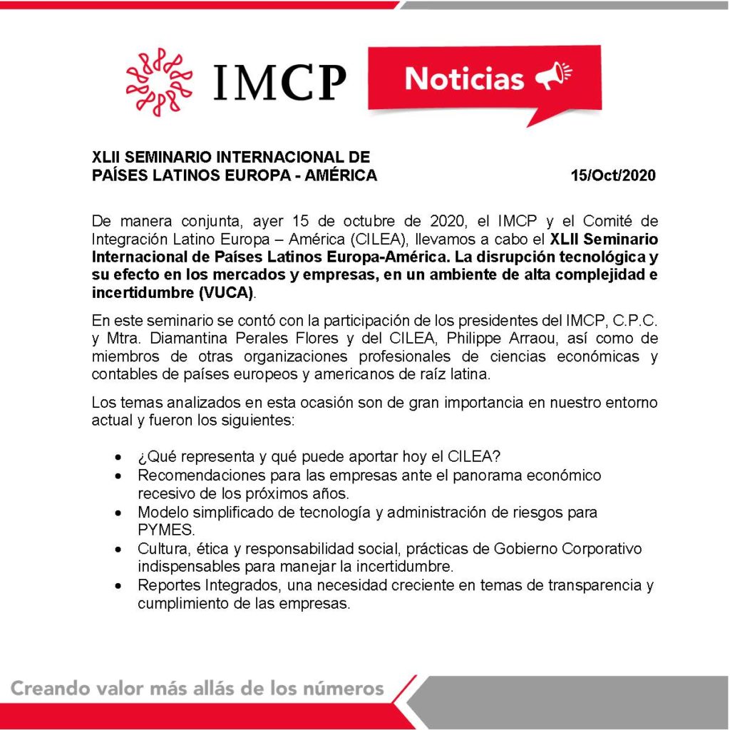 IMCP NOTICIAS. XLII Seminario Internacional de Países Latinos Europa-América.