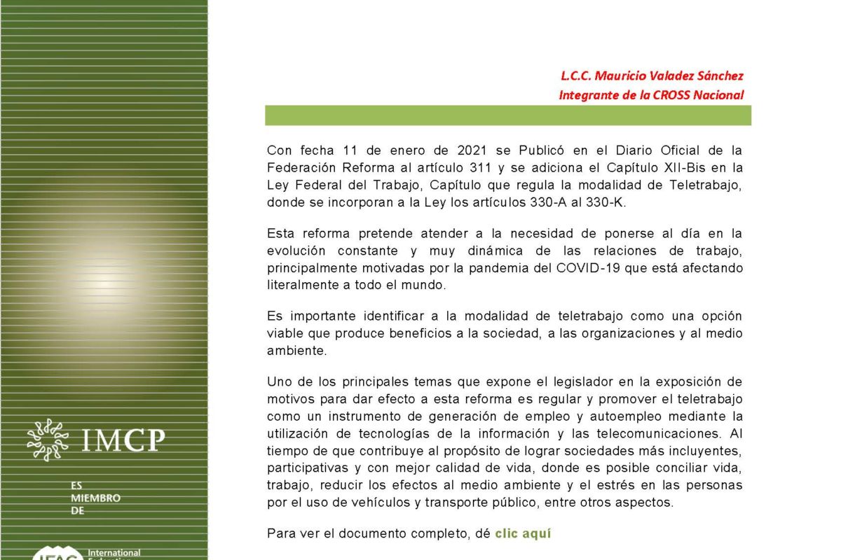 CROSS Informa 2021-02 REFORMA A LA LEY FEDERAL DEL TRABAJO EN MATERIA DE TELETRABAJO