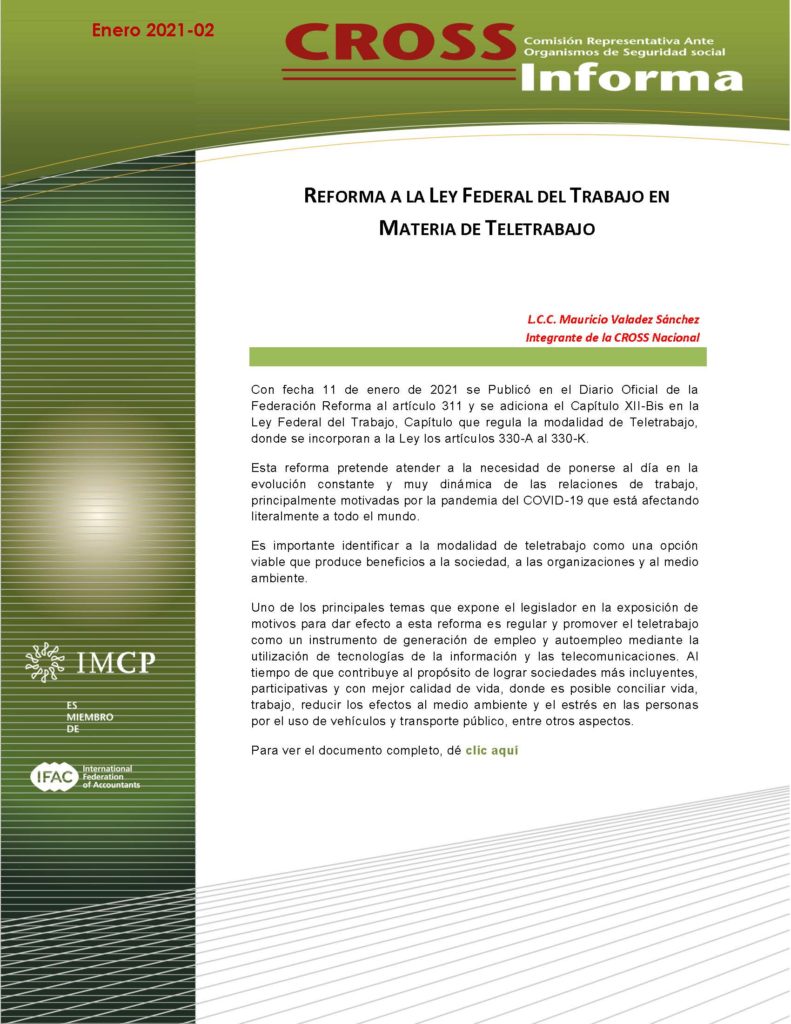CROSS Informa 2021-02 REFORMA A LA LEY FEDERAL DEL TRABAJO EN MATERIA DE TELETRABAJO