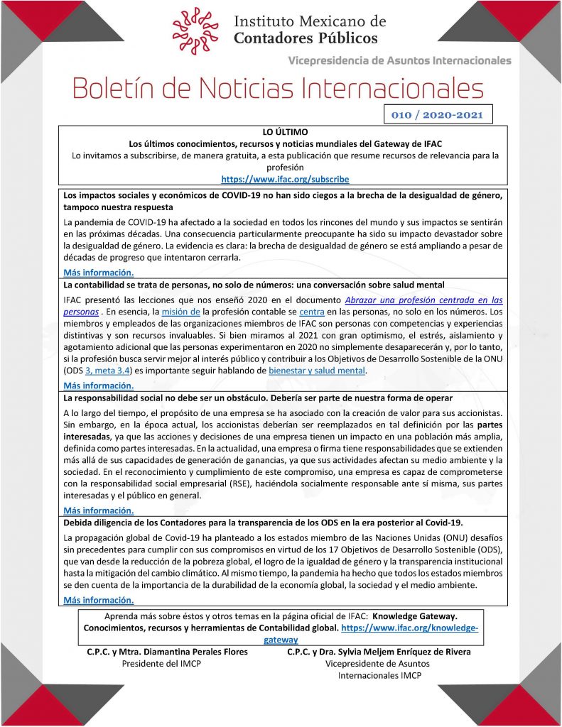 Boletín Noticias Internacionales 010 / 2020-2021