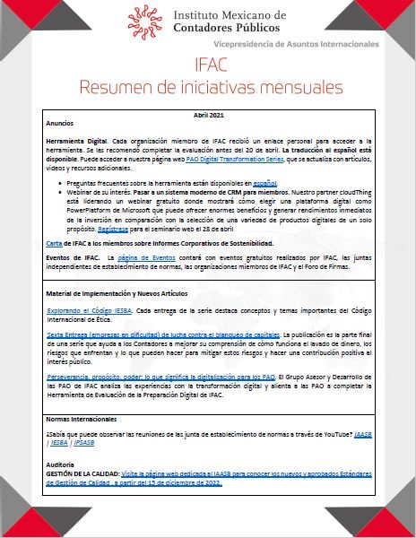 IFAC. Resumen de iniciativas mensuales. Abril 2021.