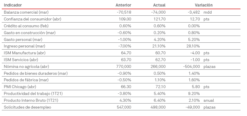 El Comité de la Reserva Federal en su reunión de política monetaria decidió por unanimidad dejar sin cambio el rango objetivo para la tasa de fondos federales de 0 a 0.25 por ciento, y espera que sea apropiado mantenerlo a ese nivel hasta que las condiciones del mercado laboral hayan alcanzado niveles consistentes con las metas del Comité de máximo empleo y una inflación que haya aumentado al 2 por ciento y esté en camino de superar moderadamente ese nivel durante algún tiempo. Dijo que seguirá aumentando sus tenencias de valores del Tesoro en al menos $USD 80 mil millones por mes y de valores respaldados por hipotecas de agencias en al menos $USD 40 mil millones por mes hasta que se haya logrado un progreso sustancial adicional hacia las metas del Comité. Agregó que en medio de los avances en materia de vacunación y un fuerte apoyo político, los indicadores de actividad económica y empleo se han fortalecido. Indicó que los sectores más afectados por la pandemia siguen siendo débiles, pero han mejorado. La inflación ha aumentado, reflejando en gran medida factores transitorios. Las condiciones financieras generales siguen siendo acomodaticias, reflejando en parte las medidas de política para respaldar la economía y el flujo de crédito a los hogares y empresas estadounidenses, señaló.