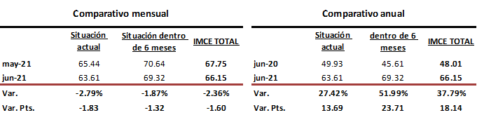 ÍNDICE MEXICANO DE CONFIANZA ECONÓMICA (IMCE) DE JUNIO DE 2021