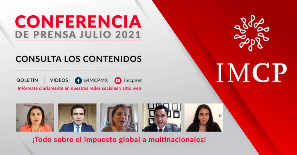 El día de hoy, 21 de julio de 2021, se llevó a cabo la Conferencia de Prensa mensual del IMCP, con la participación de: