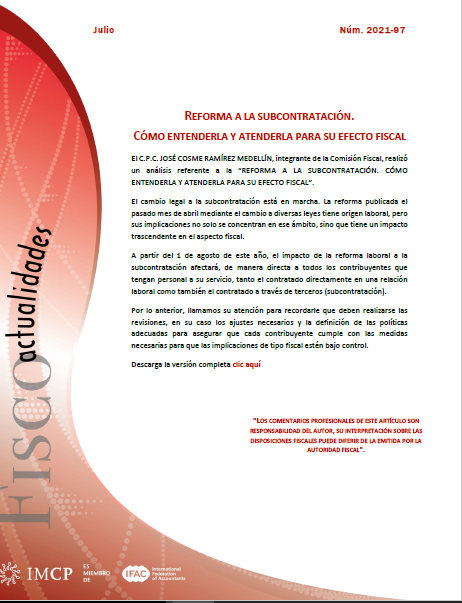 Fiscoactualidades_97 REFORMA A LA SUBCONTRATACIÓN. CÓMO ENTENDERLA Y ATENDERLA PARA SU EFECTO FISCAL