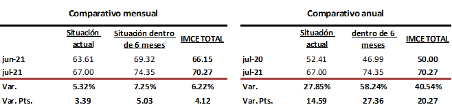ÍNDICE MEXICANO DE CONFIANZA ECONÓMICA (IMCE) DE JULIO DE 2021