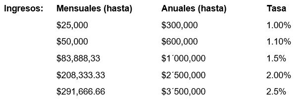 - Pago anual.- Se presenta en el mes de abril del año siguiente al que corresponda la declaración y se consideran el total de ingresos cobrados sin deducciones; al total de ingresos se le aplica la tasa aplicable y listo.