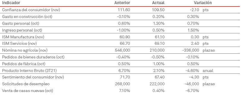 Las ventas de viviendas usadas aumentaron en octubre 0.8% a una tasa anual de 6.34 millones de unidades, alcanzando su nivel más alto desde enero, aunque en medio de la escasez de oferta los mayores precios continuaron alejando a los compradores de primera vez. La actividad económica creció a un ritmo moderado durante octubre y principios de noviembre. Varios distritos señalaron que, a pesar de la fuerte demanda, el crecimiento se vio limitado por interrupciones en la cadena de suministro y escasez de mano de obra. El gasto del consumidor aumentó modestamente. La perspectiva para la actividad general se mantuvo positiva en la mayoría de los distritos, pero algunos notaron incertidumbre sobre cuándo se aliviarían los desafíos de la cadena de suministro y la oferta de mano de obra. El crecimiento del empleo varió de modesto a fuerte. Los contactos informaron una sólida demanda de mano de obra, pero una dificultad persistente para contratar y retener empleados. Muchos distritos notaron preocupaciones de que el mandato federal de vacunación podría exacerbar las dificultades de contratación existentes. Casi todos los distritos informaron un sólido crecimiento salarial. Los precios subieron a un ritmo de moderado a sólido, con alzas generalizadas en todos los sectores de la economía.