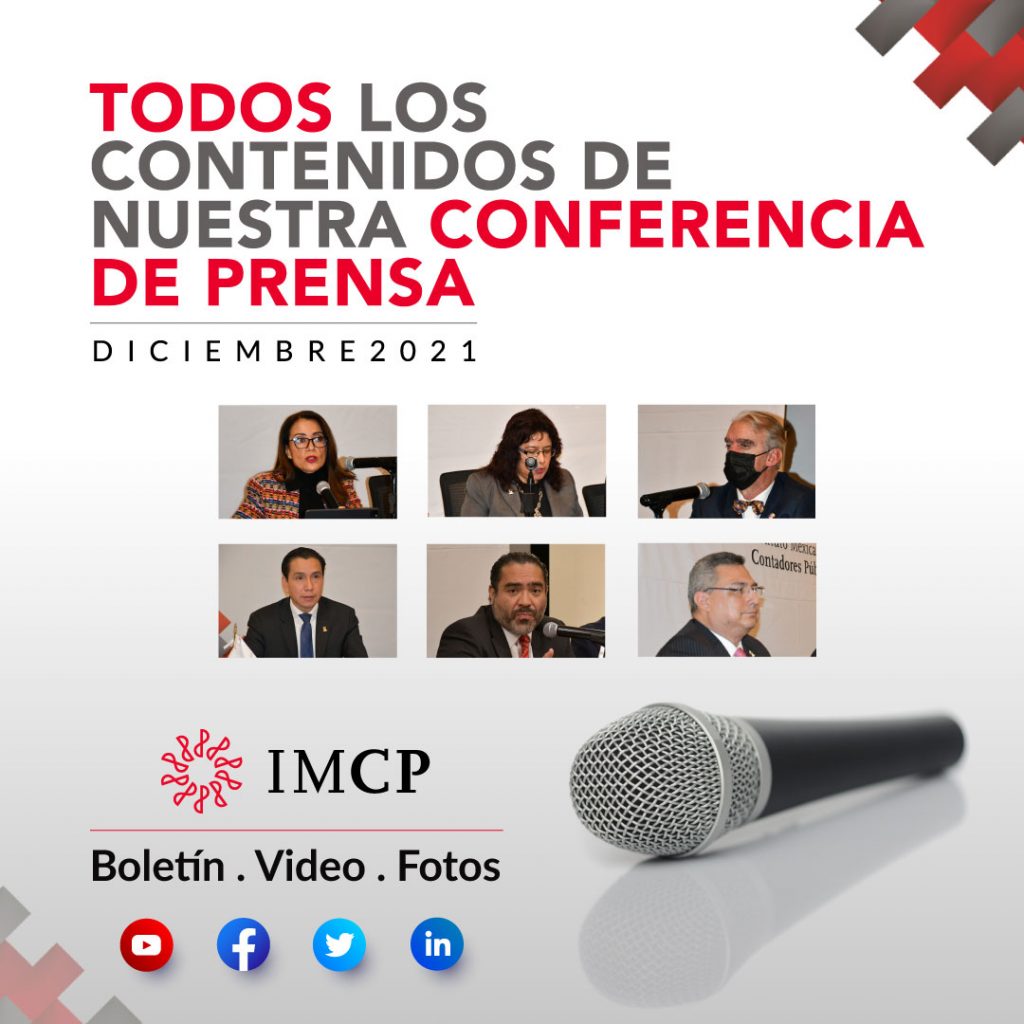 El miércoles 15 de diciembre de 2021, se llevó a cabo la conferencia de prensa mensual del Instituto Mexicano de Contadores Públicos, A.C. con la participación de: