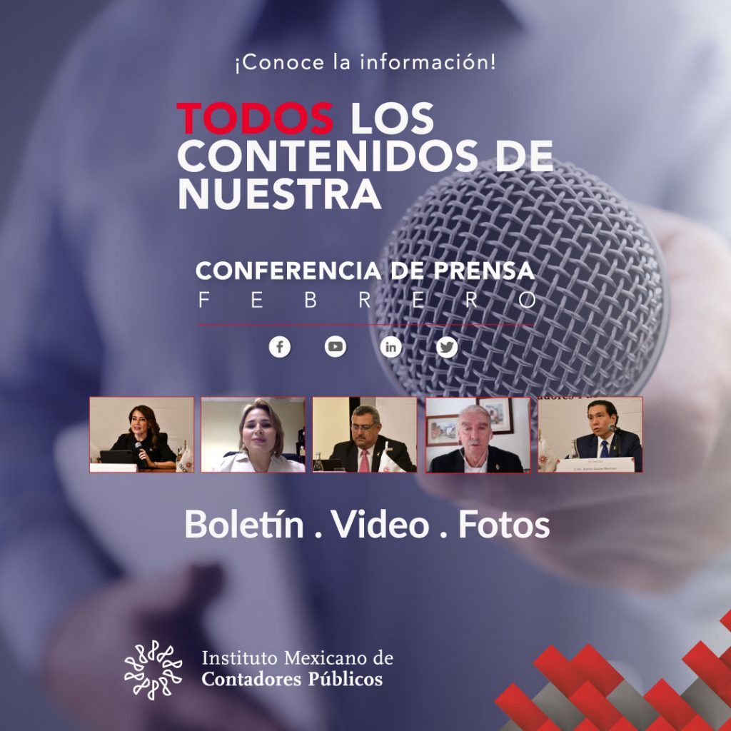 El miércoles 16 de febrero de 2022, se llevó a cabo la conferencia de prensa mensual del Instituto Mexicano de Contadores Públicos, A.C. con la participación de: