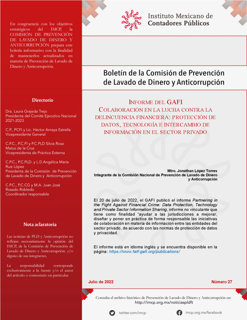 Boletín de la Comisión Nacional de Prevención de Lavado de Dinero y Anticorrupción 27/ Julio 2022
