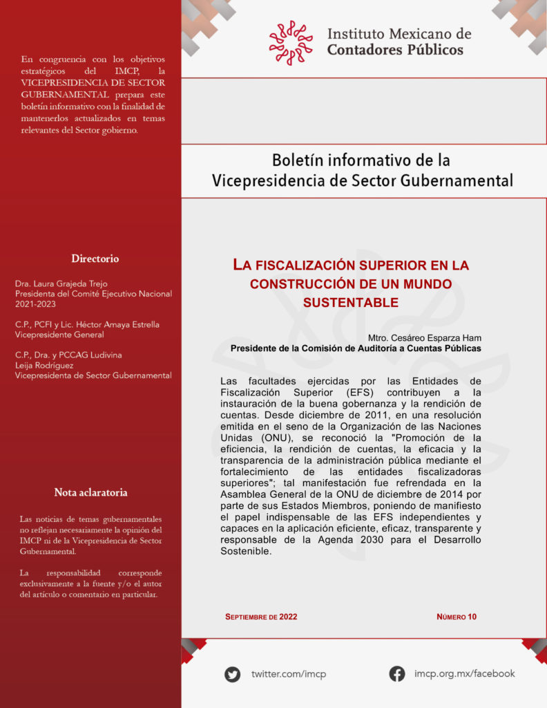 Las facultades ejercidas por las Entidades de Fiscalización Superior (EFS) contribuyen a la instauración de la buena gobernanza y la rendición de cuentas. Desde diciembre de 2011, en una resolución emitida en el seno de la Organización de las Naciones Unidas (ONU), se reconoció la “Promoción de la eficiencia, la rendición de cuentas, la eficacia y la transparencia de la administración pública mediante el fortalecimiento de las entidades fiscalizadoras superiores”; tal manifestación fue refrendada en la Asamblea General de la ONU de diciembre de 2014 por parte de sus Estados Miembros, poniendo de manifiesto el papel indispensable de las EFS independientes y capaces en la aplicación eficiente, eficaz, transparente y responsable de la Agenda 2030 para el Desarrollo Sostenible.