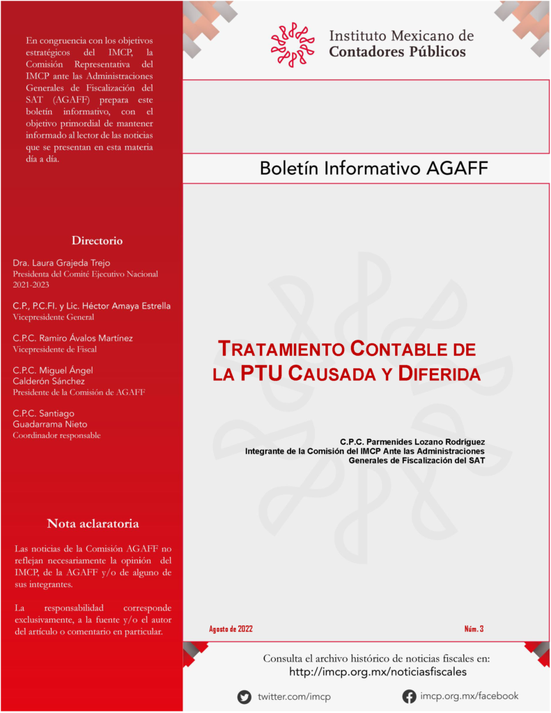 AGAFF 03 / TRATAMIENTO CONTABLE DE LA PTU CAUSADA Y DIFERIDA
