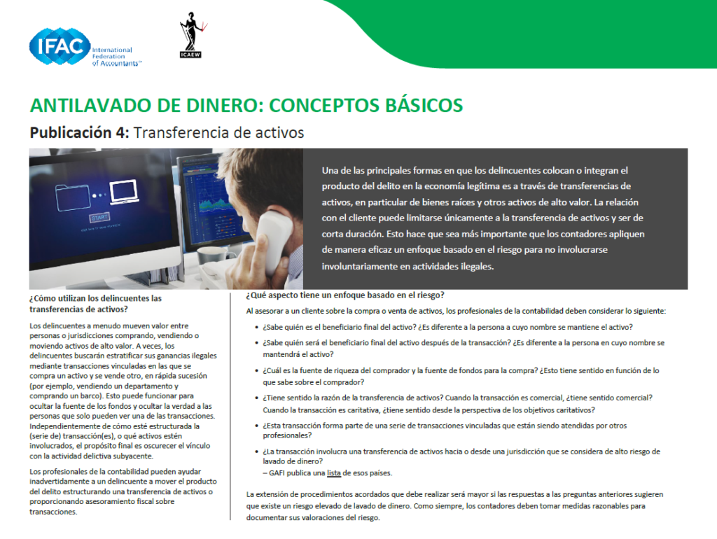 La serie brinda a los contadores profesionales una mejor comprensión de cómo funciona el lavado de dinero, los riesgos que enfrentan y lo que pueden hacer para mitigar estos riesgos y hacer una contribución positiva al interés público.