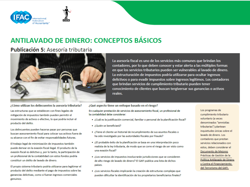 Serie IFAC Anti-Lavado de Dinero, Lo Básico: Parte 5 – Asesoramiento Fiscal
