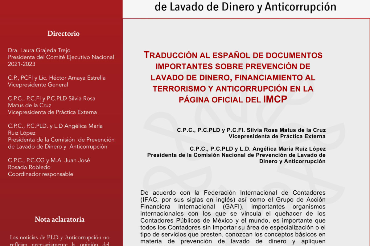 Traducción al español de documentos importantes sobre prevención de lavado de dinero,...