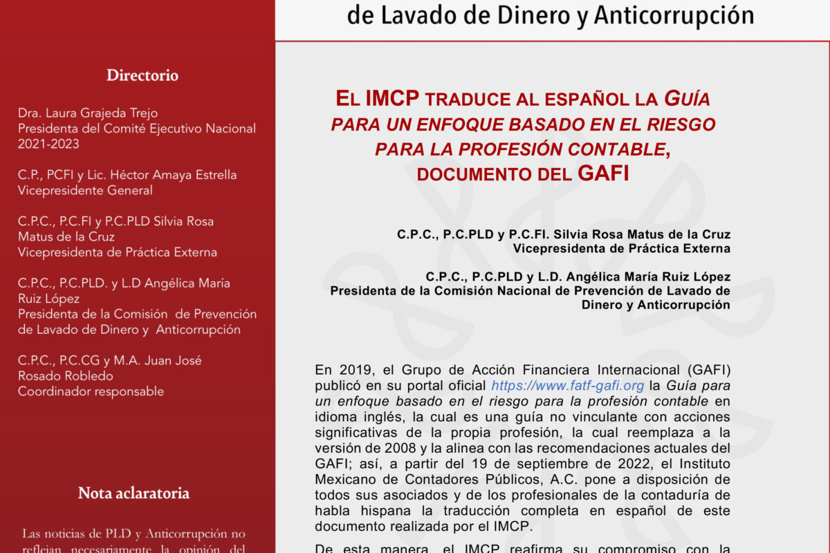 El IMCP traduce al español la Guía para un enfoque basado en...