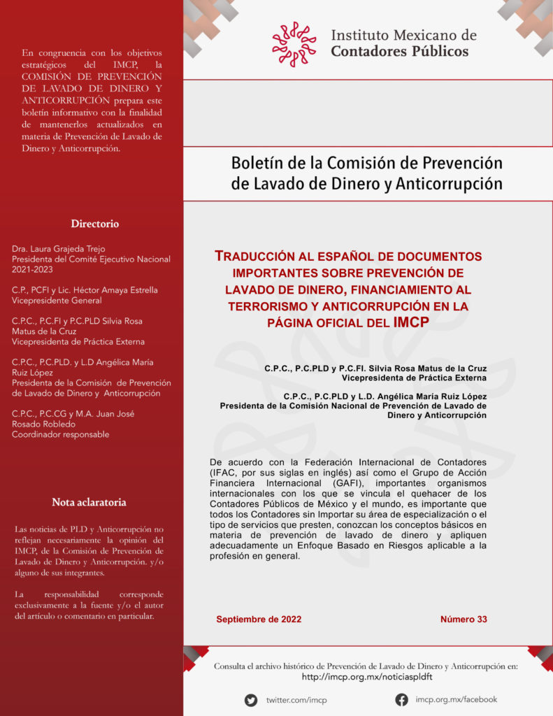 Boletín de la Comisión Nacional de Prevención de Lavado de Dinero y Anticorrupción 33 / Septiembre 2022