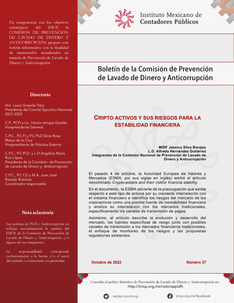 El pasado 4 de octubre, la Autoridad Europea de Valores y Mercados (ESMA, por sus siglas en inglés) emitió el artículo denominado Crypto-assets and their riskfor financia stability.