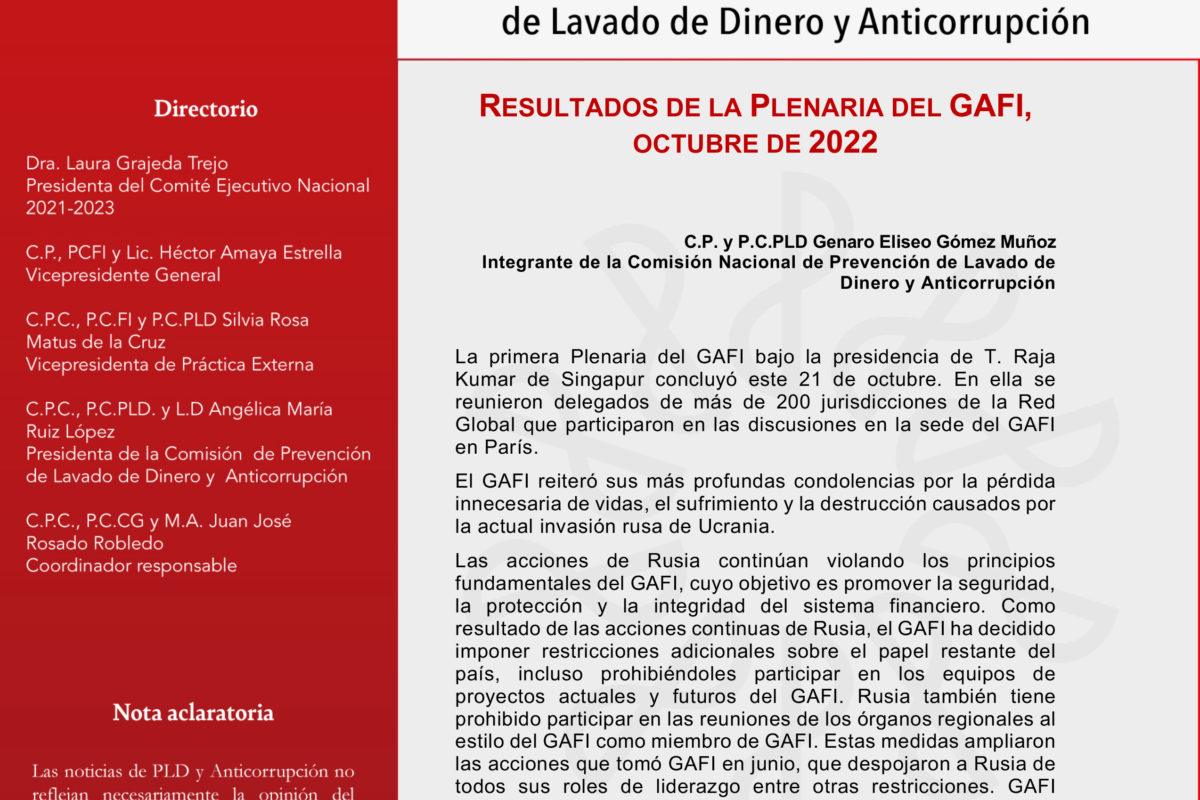 Resultados de la Plenaria del GAFI, octubre de 2022 C.P. y P.C.PLD...