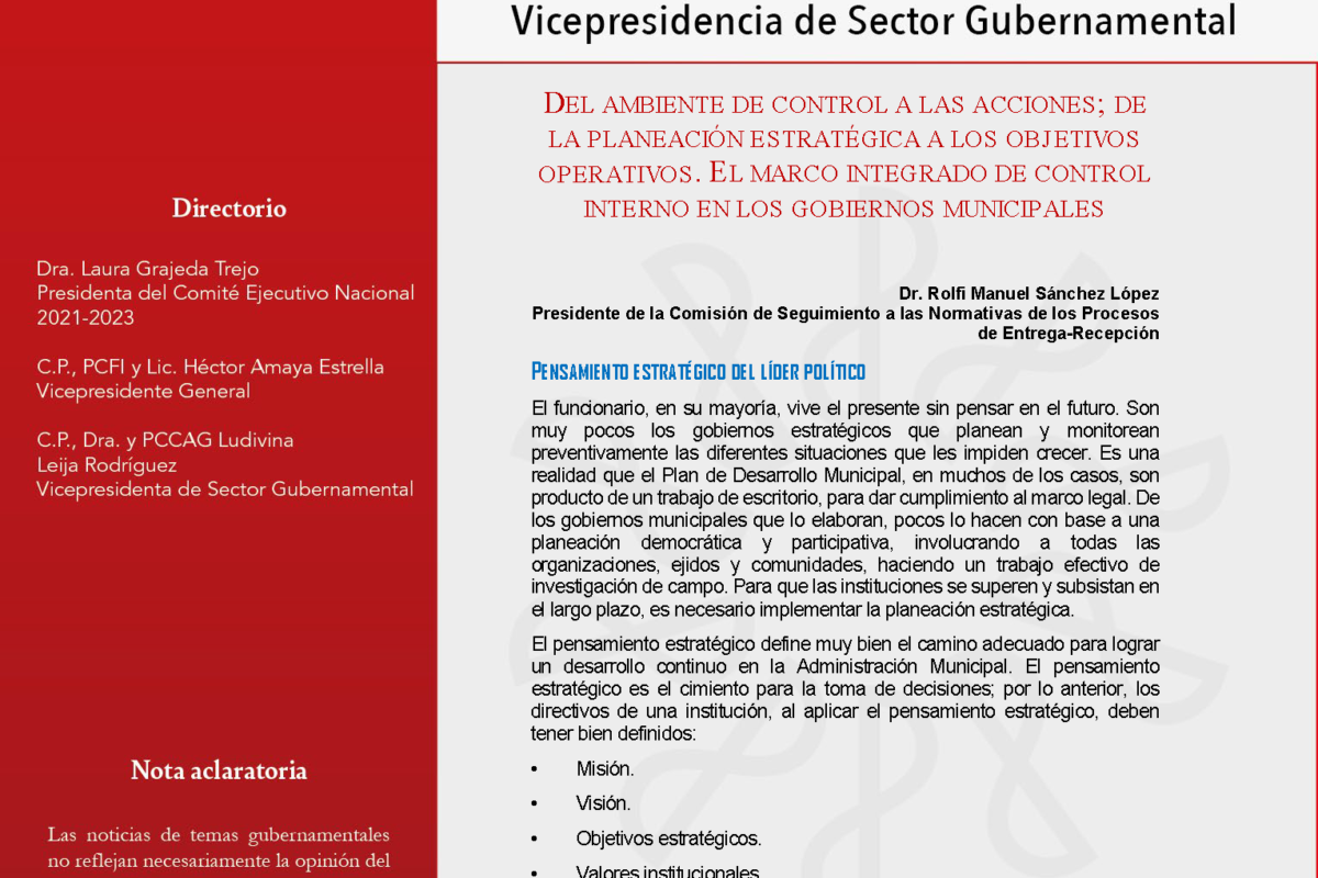 DEL AMBIENTE DE CONTROL A LAS ACCIONES; DE LA PLANEACIÓN ESTRATÉGICA A LOS OBJETIVOS OPERATIVOS. EL MARCO INTEGRADO DE CONTROL INTERNO EN LOS GOBIERNOS MUNICIPALES
