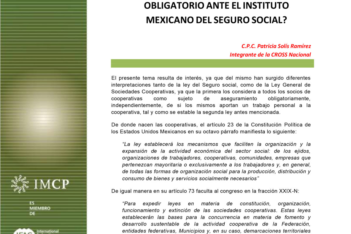 Boletín de Noticias de la CROSS 2022-24 ¿SON TODOS LOS COOPERATIVISTAS SUJETOS DE ASEGURAMIENTO OBLIGATORIO ANTE EL INSTITUTO MEXICANO DEL SEGURO SOCIAL?