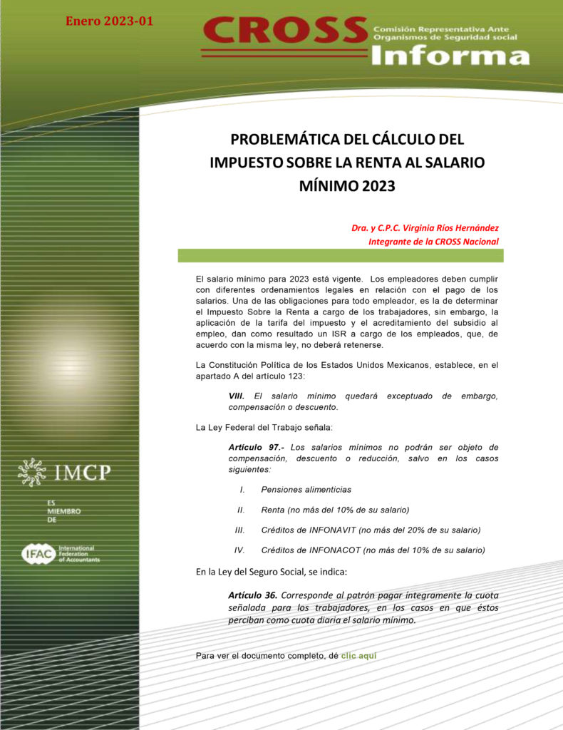 El salario mínimo para 2023 está vigente. Los empleadores deben cumplir con diferentes ordenamientos legales en relación con el pago de los salarios. Una de las obligaciones para todo empleador, es la de determinar el Impuesto Sobre la Renta a cargo de los trabajadores, sin embargo, la aplicación de la tarifa del impuesto y el acreditamiento del subsidio al empleo, dan como resultado un ISR a cargo de los empleados, que, de acuerdo con la misma ley, no deberá retenerse.