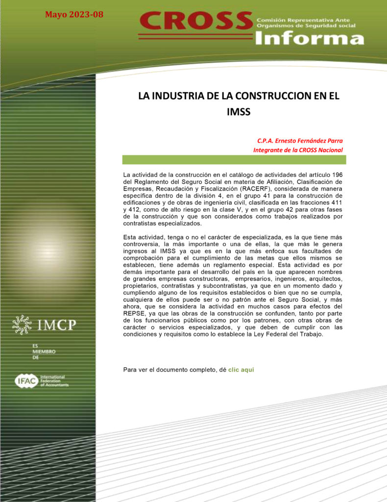 Boletín de Noticias de la CROSS 2023-08 LA INDUSTRIA DE LA CONSTRUCCION EN EL IMSS
