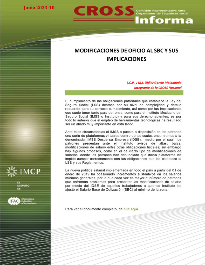 El cumplimiento de las obligaciones patronales que establece la Ley del Seguro Social (LSS) destaca por su nivel de complejidad y detalle requerido para su correcto cumplimiento, así como por las implicaciones que suele tener tanto para patrones, como para el Instituto Mexicano del Seguro Social (IMSS o Instituto) y para sus derechohabientes; es por todo lo anterior que el empleo de herramientas tecnológicas ha resultado ser un aliado muy importante en esta labor.