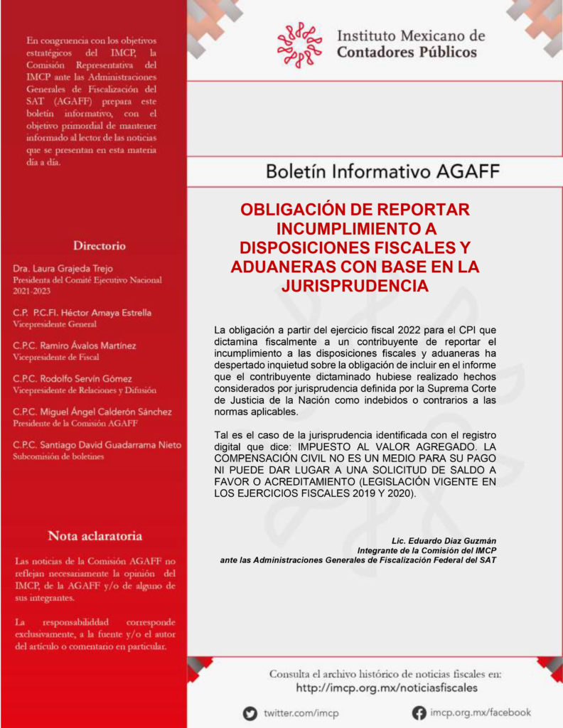 La obligación a partir del ejercicio fiscal 2022 para el CPI que dictamina fiscalmente a un contribuyente de reportar el incumplimiento a las disposiciones fiscales y aduaneras ha despertado inquietud sobre la obligación de incluir en el informe que el contribuyente dictaminado hubiese realizado hechos considerados por jurisprudencia definida por la Suprema Corte de Justicia de la Nación como indebidos o contrarios a las normas aplicables.