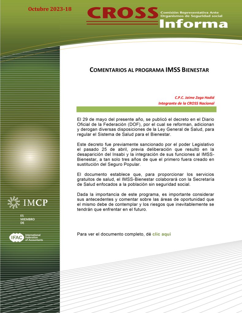 Boletín de Noticias de la CROSS 2023-18 COMENTARIOS AL PROGRAMA IMSS BIENESTAR