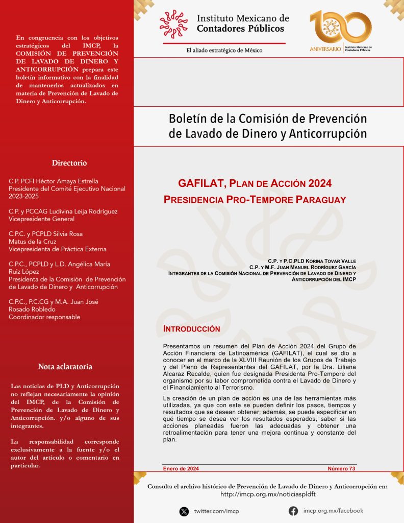 Boletín de la Comisión Nacional de Prevención de Lavado de Dinero y Anticorrupción 73 / Enero 2024