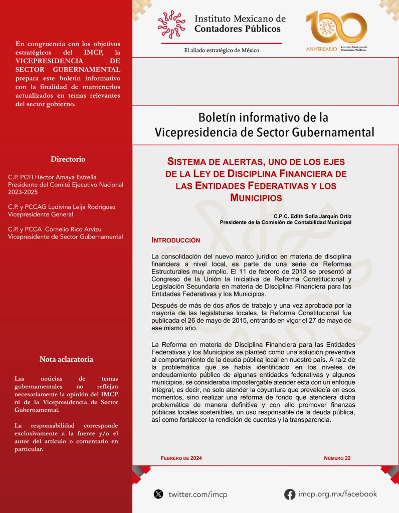 SISTEMA DE ALERTAS, UNO DE LOS EJES DE LA LEY DE DISCIPLINA FINANCIERA DE LAS ENTIDADES FEDERATIVAS Y LOS MUNICIPIOS
