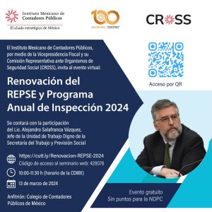 Participa en este evento organizado por el Instituto Mexicano de Contadores Públicos, por medio la Vicepresidencia Fiscal y su Comisión Representativa ante Organismos de Seguridad Social.