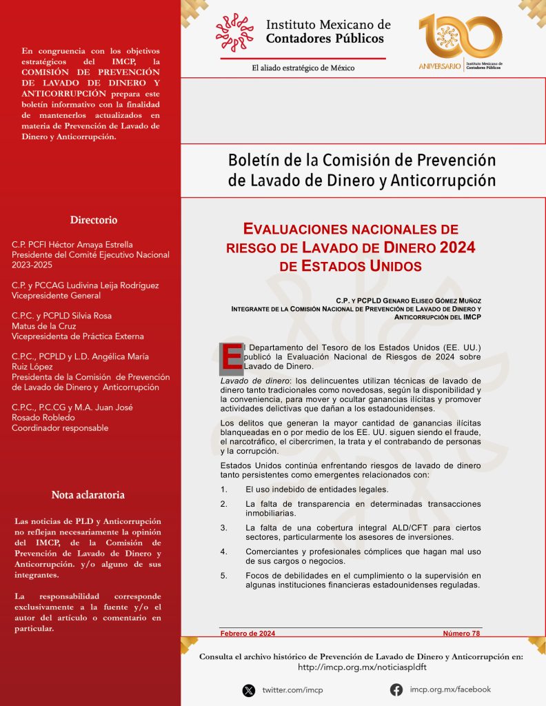Integrante de la Comisión Nacional de Prevención de Lavado de Dinero y Anticorrupción del IMCP