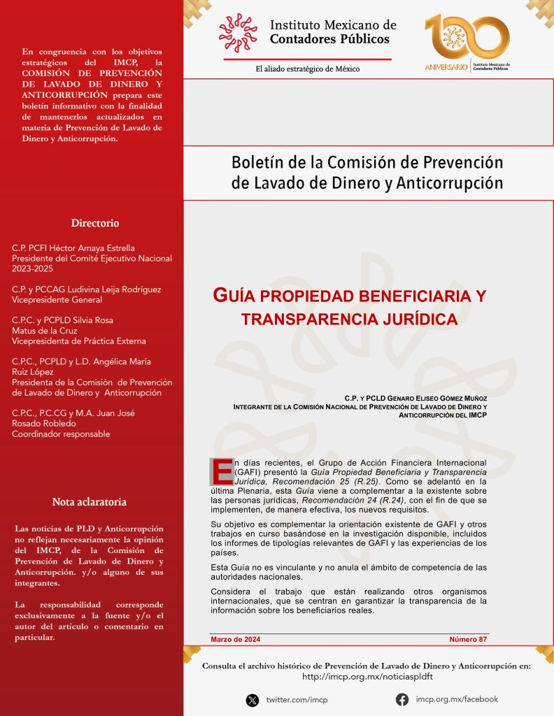 Integrante de la Comisión Nacional de Prevención de Lavado de Dinero y Anticorrupción del IMCP