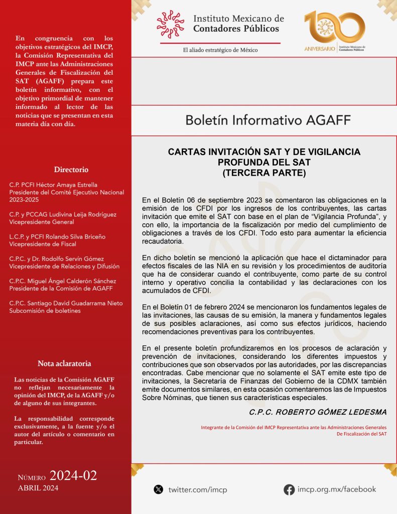 En el Boletín 01 de febrero 2024 se mencionaron los fundamentos legales de las invitaciones, las causas de su emisión, la manera y fundamentos legales de sus posibles aclaraciones, así como sus efectos jurídicos, haciendo recomendaciones preventivas para los contribuyentes.
