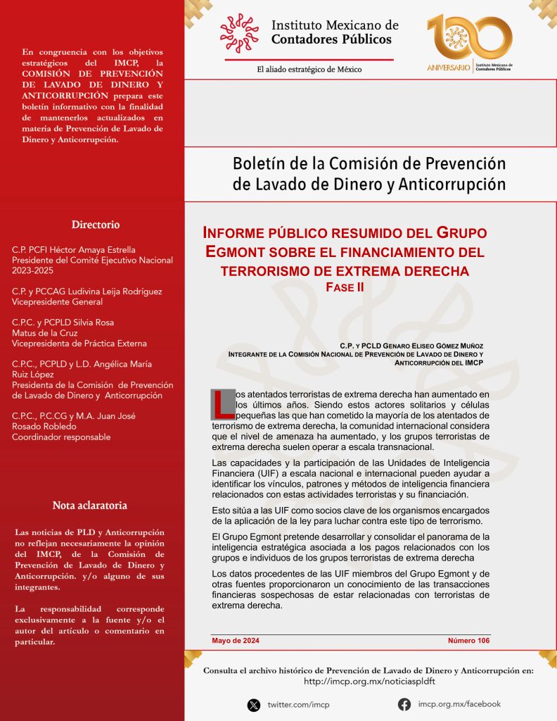 Boletín de la Comisión Nacional de Prevención de Lavado de Dinero y Anticorrupción 106 / Mayo 2024