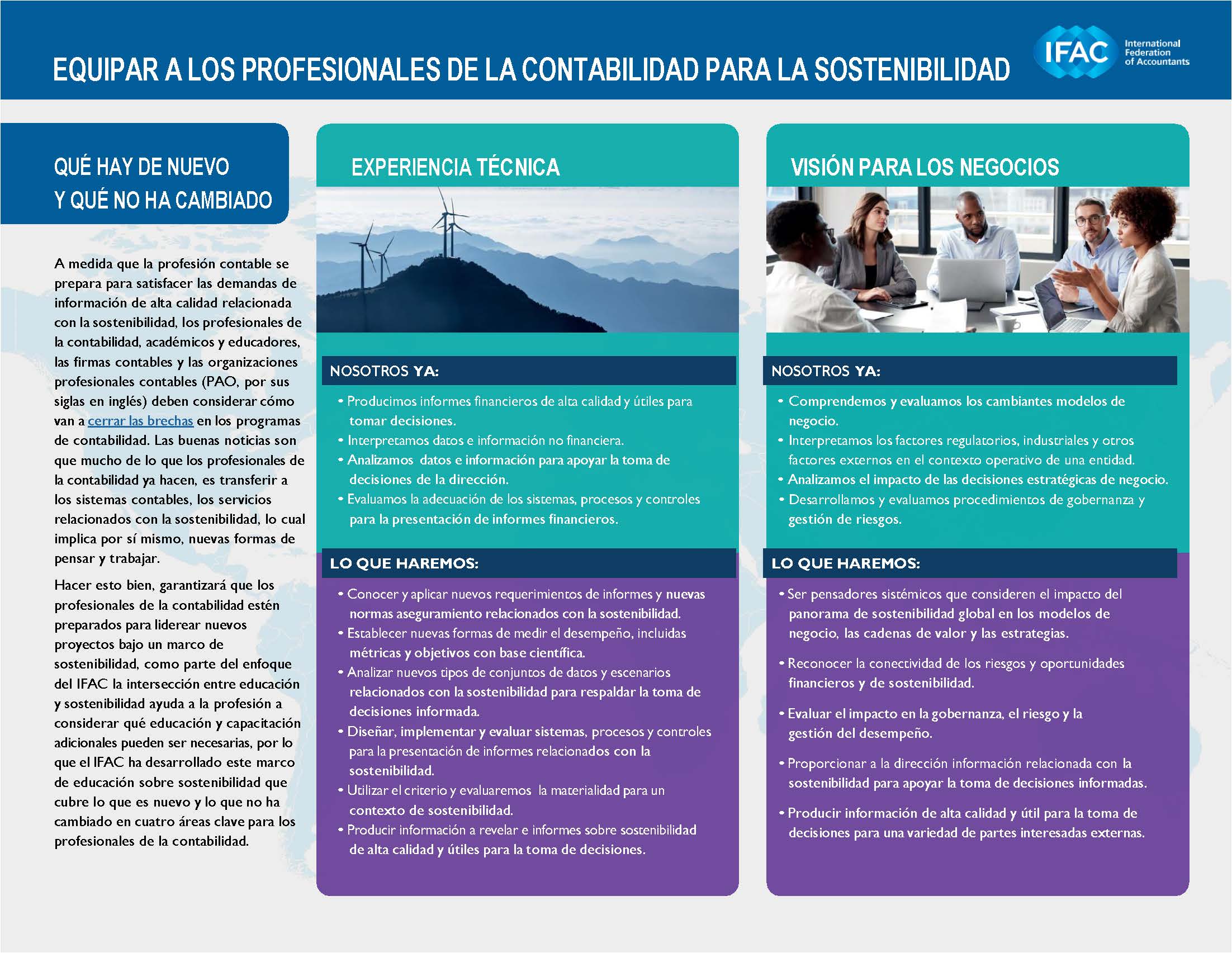 Conoce el texto “Equipar a los profesionales de la contabilidad para la sostenibilidad”, publicado en la lengua inglesa por la International Federation of Accountants (IFAC) en abril de 2024, que ha sido traducido al español por el Instituto Mexicano de Contadores Públicos, A.C. en mayo de 2024, y se reproduce con permiso de la IFAC.
