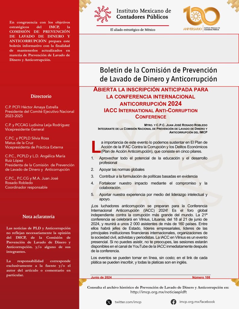 Boletín de la Comisión Nacional de Prevención de Lavado de Dinero y Anticorrupción 108 / Junio 2024