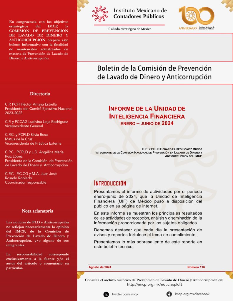 Boletín de la Comisión Nacional de Prevención de Lavado de Dinero y Anticorrupción 116/ Agosto 2024