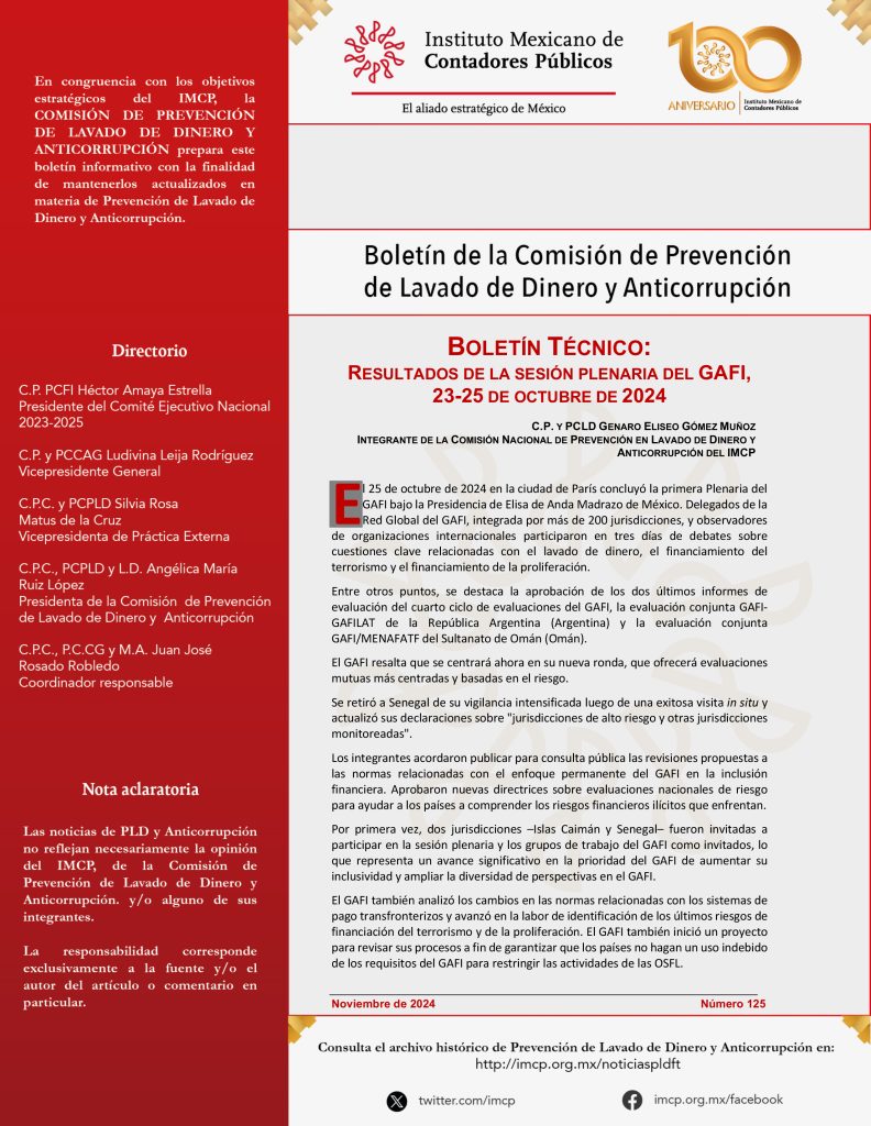 Boletín de la Comisión Nacional de Prevención de Lavado de Dinero y Anticorrupción 125/ Noviembre 2024